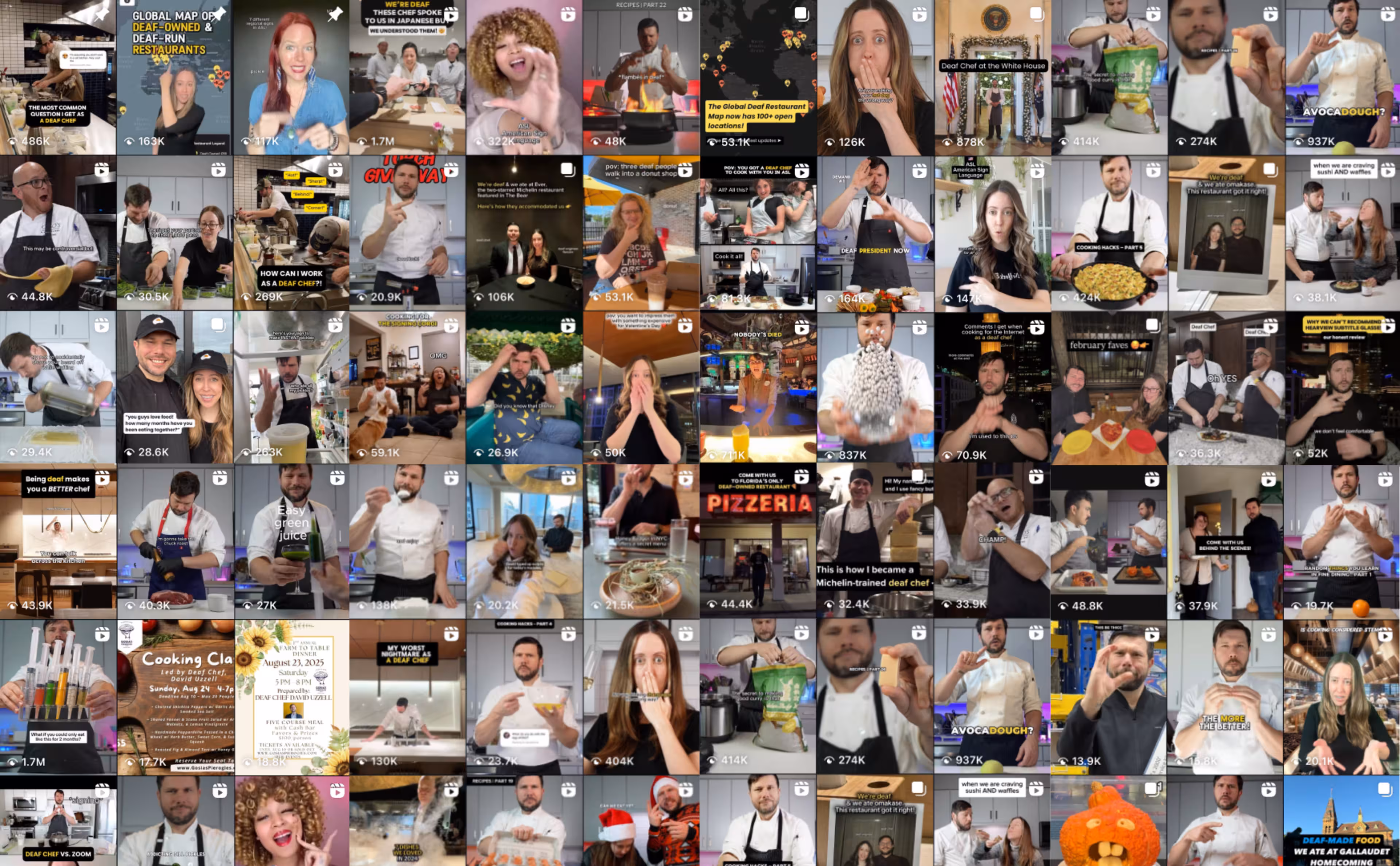 We're David Uzzell, a deaf chef, and Brienna Herold, a deaf engineer. Signs of Good Food is our creative project, where we merge sign language with good food. David is a chef with 10+ years of experience in fine dining. Bri is a biologist turned engineer who has spent her career at the intersection of food and technology. When we're not cooking or researching, we enjoy playing pinball, running long distances, and helping out on Bri's parents' farm.